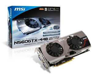 За температурный режим отвечает система активного охлаждения Twin Frozr III. Эффективный отвод тепла достигается за счет двух 80 мм вентиляторов с лопастями особой формы (на 20% эффективнее обычных вентиляторов), никелированного медного основания и четырех медных трубок (две из них — 8-мм улучшенные трубки модели SuperPipe). При полной нагрузке уровень шума не превышает 30 дБ. В видеоадаптерах MSI N560GTX-448 применяются также компоненты Military Class II, соответствующие нормативам стандарта 810G Министерства обороны США. Конденсаторы с танталовым сердечником Hi-c Cap обладают увеличенным сроком эксплуатации и снижают утечки тока в 15 раз, дроссели с ферритовым сердечником SFC обеспечивают стабильное питание при разгоне, а твердотельные конденсаторы с алюминиевым сердечником Solid CAP обладают 10-летним сроком службы и низкой температурой в рабочих режимах.