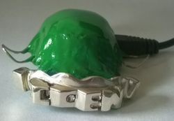 Она воспользовалась деталями от готового MP3-плеера и небольшим виброприводом, упаковав их в корпус, отлитый по слепку собственной верхней челюсти. Плеер имеет четыре кнопки, которые можно нажимать языком. Наушников у плеера нет — он воспроизводит музыку, превращая ее в вибрации, которые, передаваясь по костям черепа, звучат прямо внутри ваших ушей.