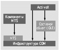 В СОМ службы защиты, регистрации, именования и информации о типах непосредственно включены в объектную модель. Ряд объектных служб реализованы в MTS, который создает на базе архитектуры СОМ многофункциональную среду времени выполнения для реализации компонентных прикладных систем, предоставляя разработчикам возможность декларировать требования к объектам, а не заниматься непосредственным программированием. MTS реализует такие службы, как гарантированное выполнение транзакций, контроль за разделяемым доступом к ресурсам, управление жизненным циклом экземпляров объектов, управление сеансами баз данных и защита. СОМ+ полностью интегрирует MTS.