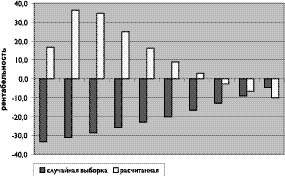 Процент охвата Стоимость рассылки, у.д.е. Общий доход при случайной выборке. Общий доход при выборке по модели абсолютная величина % абсолютная величина % 10 3000 2000 -33.3 3500 16.7 20 5800 4000 -31.0 7900 36.2 30 8400 6000 -28.6 11300 34.5 40 10800 8000 -25.9 13500 25.0 50 13000 10000 -23.1 15100 16.2 60 15000 12000 -20.0 16300 8.7 70 16800 14000 -16.7 17300 3.0 80 18400 16000 -13.0 17900 -2.7 90 19800 18000 -9.1 18500 -6.6 100 21000 20000 -4.8 18900 -10.0 Необходимо заметить, что максимум возврата инвестиций, который достигается при 20%, не совпадает с максимальным «подъемом», который достигается при сорокапроцентном охвате. То есть в каждом конкретном случае надо решать, что лучше: высокий подъем (эффективность применения модели) при невысокой рентабельности, или большая рентабельность (возврат затрат на построение и применение модели) при не самом максимальном подъеме. Если скомбинировать оба графика, то кроме вышесказанного, можно ещё найти величину прибыли, приходящуюся на каждую единицу «подъема». В нашем примере эта величина достигает максимума (90.6) при 30-процентном (!) охвате кандидатов.