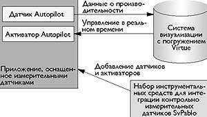 Autopilot не только обеспечивает сбор данных, но и поддерживает настраиваемое управление удаленных приложений и систем. Программные активаторы, добавленные в текст приложения или встроенные в библиотеки времени исполнения, обеспечивают механизмы реализации управляющих функций в программных модулях. На уровне приложения активаторы могут изменять значения переменных или выбирать алгоритмы для выполнения конкретной задачи. Точно также системные активаторы времени исполнения могут менять правила управления ресурсами и их параметры (такие как принципы упреждающей доставки или кэширования, используемые файловой системой). Датчики и пускатели Autopilot предоставляют данные о производительности, необходимые для визуализации программной структуры и динамики, а также средства изменения этой динамики. Virtue импортирует данные, полученные с датчиков, для выполнения объемной визуализации в реальном времени и предоставляет инструментарий для взаимодействия с активаторами Autopilot. Этот интерактивный замкнутый цикл дает пользователям возможность менять поведение программного обеспечения во время погружения в виртуальную среду.