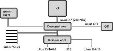 Такая более быстрая шина нужна не только для поддержки более быстрой оперативной памяти (скажем, РС133 или DDR), но и для обеспечения трафика ввода-вывода от шин PCI и графической платы. К этому вопросу мы еще вернемся при обсуждении наборов микросхем.
