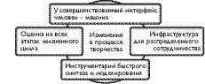 На рис. 1 отражено представление о новой культуре проектирования, которое сформировалось при работе над ISS. Новый подход позволил сократить концептуальное проектирование летательного космического аппарата от шести месяцев до двух недель за счет доступности академической и индустриальной информации на ранней стадии проектирования. Конечная цель - интеграция команд разработчиков, процессов и дисциплин для реализации следующих идей.