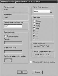 «Администратор доступа» осуществляет управление учетными записями пользователей ОС «Феникс». В главном окне отображается доступный для активного (зарегистрировавшегося) пользователя фрагмент иерархии — сведения о его подчиненных. Для добавления нового пользователя в систему необходимо ввести его учетное имя, пароль, установить метку безопасности и категории (рис. 5). После этого пользователь становиться подчиненным текущего выделенного пользователя.