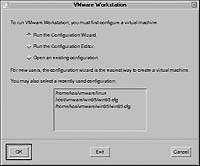 Установка лицензии на использование VMWare. Лицензия высылается в виде текстового файла, присоединенного к сообщению. Для ее установки необходимо перейти в домашний каталог, создать в нем подкаталог с именем .vmware, и скопировать полученный файл лицензии в этот подкаталог. Убедитесь, что имя файла начинается с подстроки «license». Если предполагается запускать виртуальный компьютер от имени различных пользователей, следует выполнить установку лицензии (одной и той же) в домашние каталоги каждого из них. Теперь можно уже запустить систему виртуальных машин командой vmware (исполняемый файл vmware находится в каталоге /usr/bin/vmware, так что должен запускаться без указания полного пути) и создать в ней собственно виртуальный компьютер (или несколько).