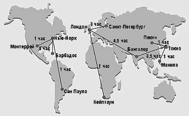 | Рис. 1. Партнеры, расположенные в различных временных зонах |