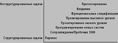 В левой нижней части рис. 3 представлены относительно однозначно формулируемые задачи, такие как проблема 2000 года. Для многих компаний, выступающих в роли Центра, эти задачи часто становились первым видом офшорного аутсорсинга. Подобные проекты иллюстрируют очень незначительную часть работ, проводимых в течение всего жизненного цикла отдельной системы. Такие проекты более управляемы на расстоянии, поскольку потребность в коммуникациях и четких указаниях довольно ограничена, а задачи относительно стабильны.