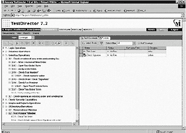 Опустим обсуждение инструментария по созданию спецификаций и рассмотрим средства для управления процессом тестирования (Test Management Automation), взяв в качестве примера программу TestDirector (рис. 1). Идея этого и ему подобных продуктов заключается в создании централизованного репозитория для хранения, доступа и управления всеми составляющими компонентами процесса тестирования. Именно с использования такого инструментария, как правило, и начинается переход от тестирования вручную к внедрению автоматизированных средств. Одно из важных требований к инструменту подобного класса — возможность использования обычного браузера в качестве клиентской части, что упрощает установку, настройку и последующую поддержку продукта.