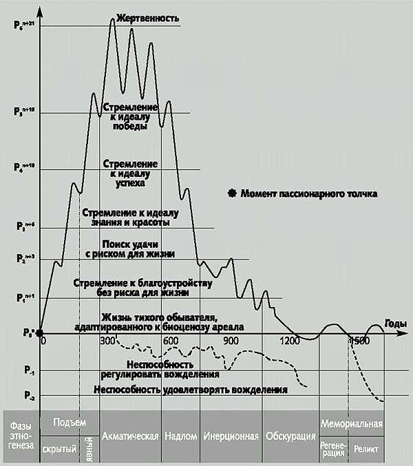 График пассионарного напряжения по теории этногенеза Льва Гумилева. Кривая хайпа совершенно неожиданно и удивительным образом напоминает этот график. Совпадение по форме и содержанию динамик двух процессов заставляет задуматься о некоей таинственной общности социальных процессов и того, что делается людьми в области технологий. В сентябре Gartner опубликовала версию кривой хайпа для Web-служб в том виде, какой она представляется аналитикам сегодня. Аналитики считают, что пик разочарования будет пройден в этом году, а в 2004-м начнется массовое внедрение этой технологии