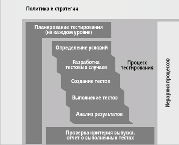 «Мы не можем тестировать, поскольку пока еще ничего не создано. Тестеры просто опробуют систему и смотрят, что происходит. В любом случае, нельзя тестировать листок бумаги», — все эти три утверждения не соответствуют действительности. Во-первых, тестирование вовсе не сводится к наблюдению за тем, что происходит. Это значительно более тщательный и систематизированный процесс. Во-вторых, тестирование — это нечто большее, чем выполнение тестов. Как показано на рис. 2, выполнение тестов и проверка результатов — лишь часть фундаментального тестового процесса, в которые входят и другие, не менее важные виды деятельности. В-третьих, можно и нужно тестировать написанные на бумаге требования, определяя, насколько полно и адекватно они соответствуют целям, стоящим перед компанией или указанным в проекте. Если не протестировать требования, изложенные на бумаге, в систему будут внесены ошибки, которые легко можно устранить значительно раньше.
