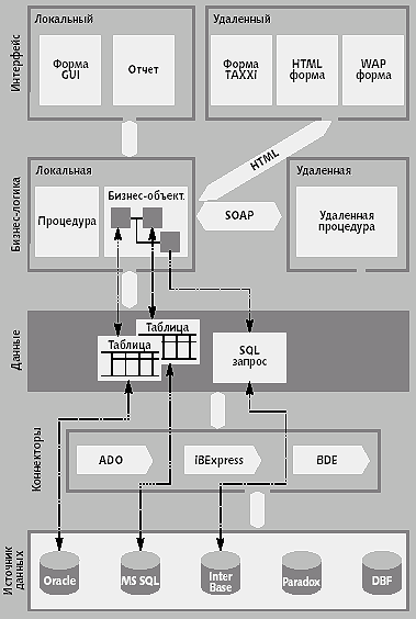 SOAP-расширение, реализованное в TEKTON-Matrix, позволяет использовать бизнес-логику, находящуюся на удаленном TEKTON-сервере, к которому в момент выполнения процедуры необходим доступ через Internet; при этом разработчику совершенно не нужно быть знакомым с транскрипцией SOAP. Аналогичный механизм, также основанный на SOAP, реализован в Axapta, однако разработчик должен хорошо ориентироваться в нем, как минимум, умея встраивать его в код приложения. Такой же механизм можно разработать и в Delphi, но для этого также надо хорошо разбираться в тонкостях SOAP.