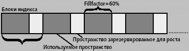 оптимизатор не сможет им воспользоваться, что связано с архитектурными особенностями данного типа индексирования. В данном примере индекс может быть использован при запросах по fullname, birth, sex либо fullname, birth либо только fullname. Несмотря на этот недостаток, индексы B-деревьев наиболее распространены и используются во всех рассматриваемых СУБД. Для B-дерева можно задать «степень использования страницы индекса» (fillfactor); так, в Oracle используются параметры PCTUSED и PCTFREE для блоков базы данных в том числе и индексных. При создании индекса его страницы заполняются только на указанный процент (рис. 5). При увеличении процента использования страницы увеличится скорость операций изменения индекса, однако возрастут также расходы на хранение и может увеличиться время выполнения запросов.