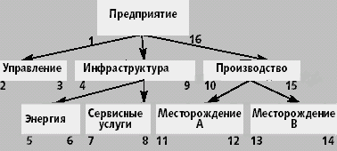 Сначала заполняется левая граница и лишь затем правая — при движении обратно от потомков к родителям. При такой нумерации узлов каждый родитель содержит потомков, левая и правая граница которых лежит в интервале между левой и правой границей родителя. Аналогично все родители потомка имеют левую границу, которая меньше левой границы потомка и правую, большую правой границы потомка. Следовательно, сумму затрат для конкретного места возникновения затрат и всех его составляющих можно получить одним запросом. Например, для получения затрат по инфраструктуре можно выполнить следующий SQL-запрос:
