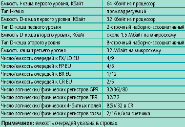 | Таблица 2. Некоторые характеристики микроархитектуры Power4 |