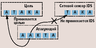 - IDS принимает данные полностью в случае посылки их в TCP-сегменте с неправильным номером очереди, тогда как операционная система "отрезает" лишние данные.