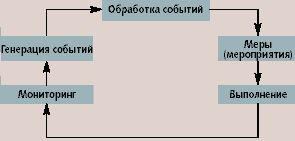 - Обработка события. Описывает процедуру, решающую, какие меры необходимо предпринять в качестве реакции на полученное событие. Каждому событию ставится в соответствие набор правил, определяющих те меры, которые надо предпринять по обработке события. Эти правила могут учитывать конфигурацию системы, время дня и т.д.