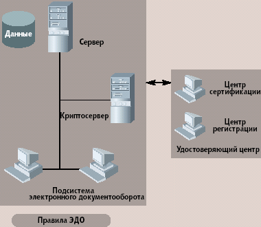 Основной компонент инфраструктуры открытых ключей — корпоративный удостоверяющий центр является ядром системы электронного документооборота, основные функции которого состоят в обеспечении регистрации конечных пользователей, формировании сертификатов открытых ключей пользователей, а также хранении базы всех изготовленных сертификатов и списков отозванных сертификатов в течение установленного срока.