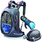 Рюкзак, перчатка и шлем футуристического вида — таков пятикилограммовый «набор командира» от компании NetworkAnatomy. Впрочем, комплект CommanderPack предназначен вовсе не для солдат будущего, а для сотрудников служб спасения. Набор представляет собой инструмент обмена и управления информацией: в водонепроницаемом рюкзаке находится планшетный компьютер с программами кризис-контроля, офисными и другими приложениями; шлем оснащен видеокамерой и микрофоном; а перчатка содержит аппаратуру мобильной связи по всем мыслимым каналам и заодно позволяет управлять компьютером в рюкзаке, не снимая его со спины.