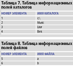Рассмотрим пример файловой системы (рис. 5), отображаемой в таблицы реляционной базы данных: таблица вершин, таблица связей, таблица информационных полей каталогов и таблица информационных полей файлов (таблицы 5-8). На рис. 5 каталоги изображены прямоугольниками, а файлы кружками.