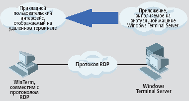| Рис. 2. Взаимодействие терминального сервера Windows Terminal Server с клиентом |