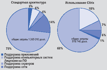 | Рис. 3. Сравнение затрат на создание и поддержку корпоративной инфраструктуры (данные Citrix) |