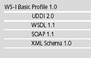 Программный интерфейс реестра сервисов составляет часть стека протоколов взаимодействия. В наборе технологий Web-сервисов таким стандартом является UDDI (Universal Description, Discovery and Integration). Его спецификация является единственной из ядра основополагающих стандартов Web-сервисов, разработанной вне рамок консорциума World Wide Web Consortium. Таким ядром принято считать спецификации, входящие в профиль WS-I Basic Profile (рис. 2), призванный обеспечить общую для различных инструментальных платформ базу взаимно совместимых технологий описания, публикации, обнаружения и вызова сервисов.