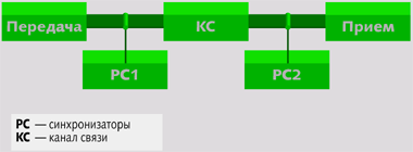 Для надежной работы КС 1. Часть пропускной способности КС отдается под постоянную синхронизацию связи в течении сеанса 2. В начале сеанса связи производица передача синхропосылки для заполнения РС2 надежной информацией 3. В течение сеанса производится регулярная проверка синхронности связи Рис. 2. Пример надежной схемы из ненадежных элементов |