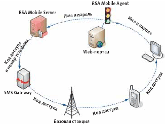 Решение по доставке атрибутов одноразового пароля на мобильный телефон, предложенное компанией RSA Security, включает два основных программных компонента — сервер аутентификации и агент, устанавливаемый на защищаемый ресурс. Для подключения к сети GSM и передачи текстовых сообщений SMS по протоколу SMPP используется специальный модуль расширения (plug-in). Никакого дополнительного аппаратного и программного обеспечения на рабочем месте конечных пользователей не требуется.