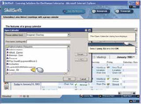 | Рис. 2. В курсах SkillSoft теоретическое изложение чередуется с закреплением материала в имуляционном режиме: симуляция работы календаря в Lotus Notes |