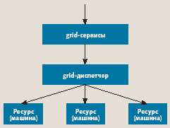 На такой способ организации ресурсов ориентирован Globus Toolkit, обеспечивающий поддержку интерфейсов с PBS (www.openpbs.org), Condor (www.cs.wisc.edu/condor), LSF (www.platform.com/products/LSFfamily), SGE (www.sun.com/software/ gridware/sge.html) и др. Виртуализация ресурсов здесь происходит на уровне отдельных узлов grid, а для обеспечения прозрачного доступа ко всем ресурсам виртуальной организации предполагается наличие сервиса глобальной виртуализации — брокера, или диспетчера (рис. 1).