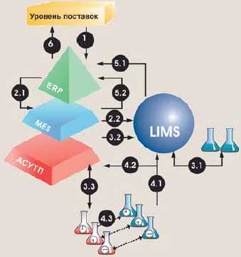 Кроме представления о прямой интеграции LIMS с ERP-системой существует более широкий взгляд на интеграцию. Активно развивается методология автоматизации, ориентированная на уровень исполнительных систем производства (Manufacturing Execution System, MES). В отечественной литературе встречается аббревиатура АСУПП — автоматизированные системы управления производственными процессами, что оправдано, поскольку речь идет о программном обеспечении, непосредственно связанном с управлением производством. Существует много точек зрения на то, что же такое MES; остановимся на изложении позиции международной ассоциации Manufacturing Enterprise Solutions Association (MESA).