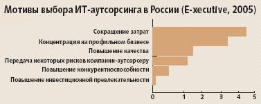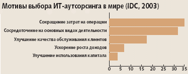 По данным IDC, в 2003 году в мире среди причин обращения компаний к услугам аутсорсинга преобладали временные ограничения ИТ-проектов и наличие передовых технологий у поставщиков таких услуг. Опрос, проведенный