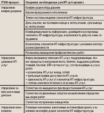 | Таблица 1. ITSM-процессы как источник информации для ИТ-аутсорсинга |