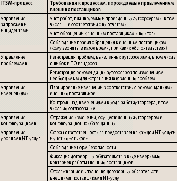 | Таблица 2. Требования к ITSM-процессам при использовании ИТ-аутсорсинг |
