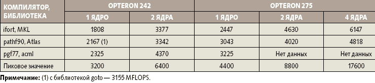 Производительность на тестах Linpack (n=1000), MFLOPS