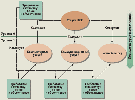 Пример моделей сервисов уровня 0 (наивысший уровень контекстуального представления сервисов) и уровня 1 (первое концептуальное представление)