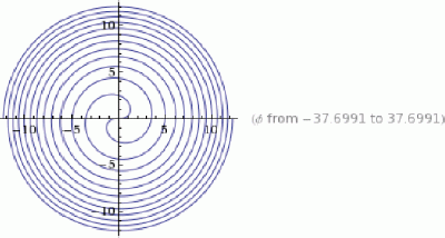 Еще один пример возьмем из математики. Построим спираль Ферма, для этого введем "r^2 = 4*phi", а в ответ система не задумываясь выдаст картинку:
