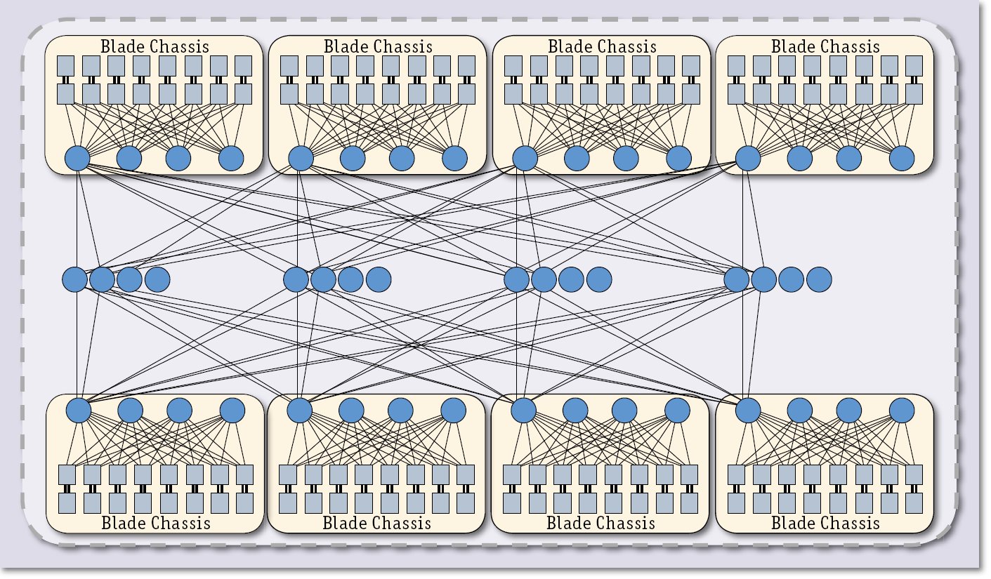 Применение различных топологий нацелено на достижение максимальной половинной пропускной способности (одна половина системы может обмениваться данными с другой половиной системы) и минимизацию задержек при коммуникациях с наиболее удаленными узлами. Достигаемая половинная пропускная способность превышает 15 Тбайт/с.