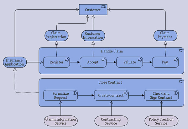 Интуитивная понятность. Интуитивная понятность не относится к сильным сторонам ArchiMate. На рис. 10 и 11 показаны модели одного и того же процесса в ArchiMate и BPMN.