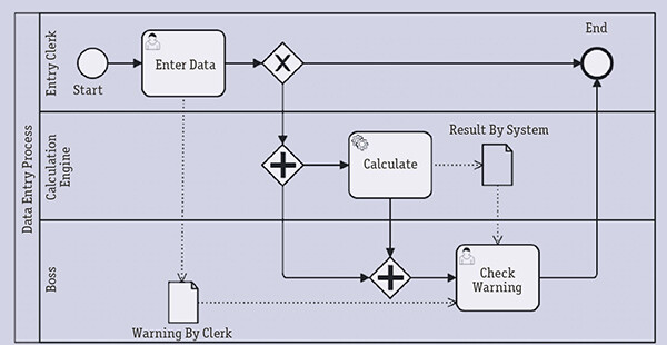 Интуитивная понятность. Базовый уровень палитры BPMN интуитивно понятен благодаря тому, что он базируется на элементах традиционных блок-схем. Преимущество нотации — однозначность трактовки диаграмм через механизм токенов: неважно, что имел в виду автор, — диаграмма говорит сама за себя. При грамотном применении диаграммы BPMN, с одной стороны, понятны бизнес-пользователям, а с другой, точны, чтобы однозначно донести бизнес-логику до ИТ-разработчика. В отличие от традиционного подхода к автоматизации, когда диаграмма является просто иллюстрацией к техническому заданию, BPMN позволяет создавать исполняемые модели процессов, которые интерпретирует непосредственно движок BPMS-системы. Так BPMN позволяет реализовать принцип «как нарисовали, так и работаем».