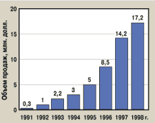 | Рис. 1. Объем продаж «коробочного» ПО фирмой «1С» в 1998 г. составил 17,2 млн. долл. |