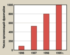 | Рис. 2. Рост франчайзинговой сети «1С» (январь 1996 г. — февраль 1999 г.) |