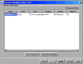 На следующем этапе задаются параметры инициализации. Кроме имени параметра и его типа также задаются: описание параметра; переменная внутри сервлета, которой будет передано значение параметра после его считывания; значение параметра по умолчанию; имя метода сервлета, в котором должно происходить считывание параметра (рис. 6).