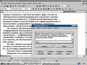 При работе с программой у меня постоянно возникал вопрос: «А для чего же вообще «Клуб голосовых технологий» разработал этот продукт?» На коробке к нему написано: «Синтезатор осуществляет чтение выделенного текста в любой программе под управлением Windows 95». Звучит неплохо, но вряд ли кто-нибудь захочет озвучить бухгалтерский баланс или отчет о командировке. Смотрю далее: «Синтезатор читает меню и экранные сообщения». Возможно, я и не прав, но вряд ли данная функция имеет практическую ценность.