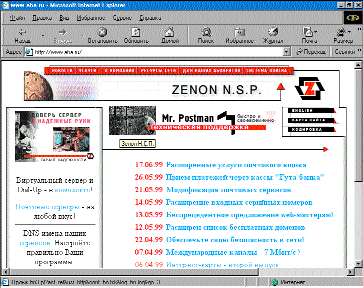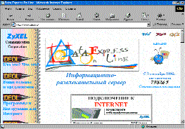 По стоимости и уровню загруженности линий DEOL занимает среднее место между дорогими провайдерами и компаниями, предлагающими совсем дешевый доступ в Сеть. Этот провайдер уделяет большое внимание своему серверу, который превратился в настоящее Web-издание. Каждый посетитель может найти здесь для себя что-нибудь интересное. Справочный блок для жителей Москвы содержит обширную информацию — от адресов обувных мастерских до сведений военно-исторического характера. На сервере можно, например, узнать прогноз погоды или побывать в клубе юмористов. Пользователям Data Express On Line предлагается файловая библиотека объемом около 6 Гбайт, в которой можно найти полезные утилиты, игры, обучающие программы и многое другое. По мере изменения запросов и роста потребностей пользователей коллекция обновляется. Эта не совсем привычная для нынешних провайдеров услуга, судя по всему, — продолжение традиций электронных досок объявлений (BBS), широко распространенных до появления Internet (следует заметить, что Data Express on Line создал известную BBS под названием White Bear).