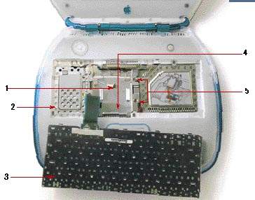| Вид iBook изнутри до того, как сняты металлические экраны. |