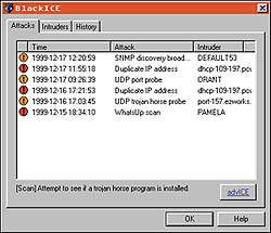 Дешевое ПО для защиты от хакеров может служить неплохой альтернативой дорогим аппаратным и программным брандмауэрам, предназначенным для больших корпоративных сетей. Таковы, например, пакеты BlackIce Defender компании Network Ice (40 долл.) и ConSeal Private Desktop компании Signal 9 Solutions (50 долл.), которые оба очень неплохо защищают систему. У BlackIce менее сложный интерфейс, и его проще обновлять, зато ConSeal предлагает квалифицированному пользователю больше возможностей контролировать программы, обменивающиеся данными с Internet. Оба пакета способны вести подробные журналы событий, которые помогут вам выследить хакеров и их провайдеров.