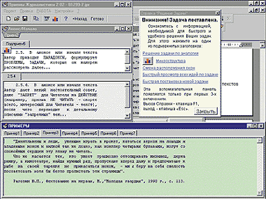 - в базе данных примеров типовых задач явно преобладают периодические издания (что согласуется с адресацией программы в первую очередь журналистам);