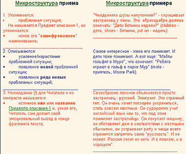 В программе предусмотрена (режим «Микроструктура приема») возможность очень подробного, с точностью до фраз, анализа примеров, в которых составитель программы объясняет, как автор текста примера достигает сформулированной в условиях цели (рис. 3). Такому тщательному препарированию подвергнуты 336 примеров из базы данных программы.