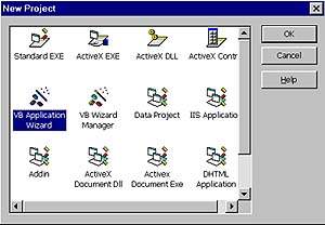 В приведенном выше примере мы специально создавали все компоненты интерфейса вручную, чтобы продемонстрировать основы технологии. Однако для ускорения многих операций можно воспользоваться мастерами VB 6.0, которые автоматически создают базовые программные конструкции. Наиболее часто прибегают к услугам мастера Application Wizard, появившегося еще в VB 5.0 (в VB 6.0 список мастеров существенно расширился).